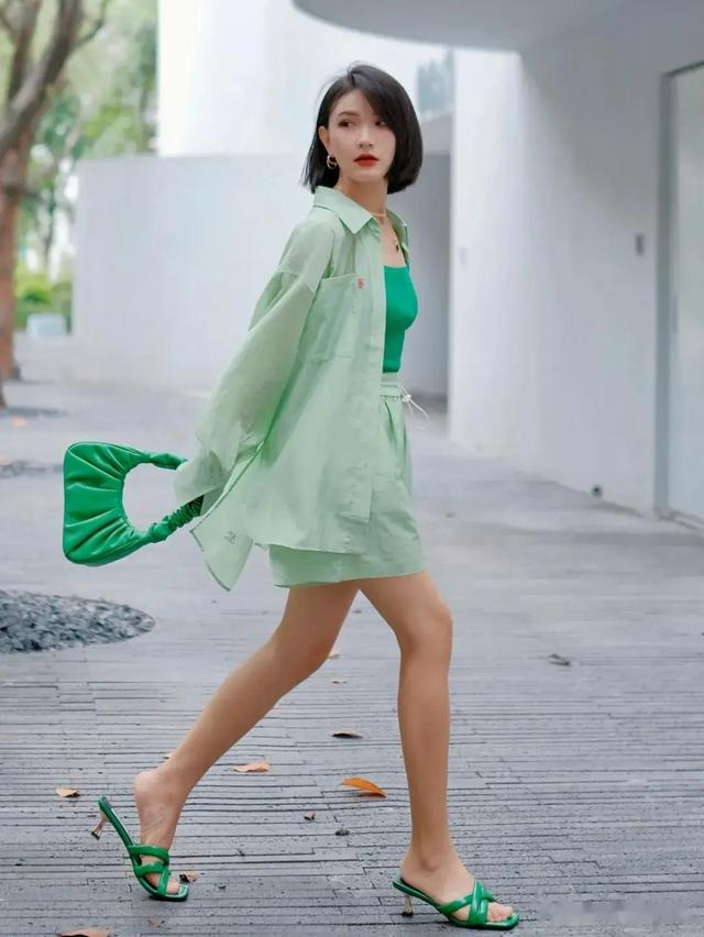 搭配上的小心机在于色彩呼应。用浅绿色裤子搭配同色系耳环,能在视觉上形成纵向延伸感;与芥末黄、珊瑚粉等撞色组合,则能激活多巴胺穿搭的快乐因子。更值得尝试的是"50%绿色法则",即让浅绿色占据全身50%的面积,这种恰到好处的存在感,既能点亮造型又不会过于突兀。